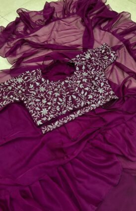 Wine Lehenga 1 Minute Saree With Stitch Blouse With Embroidery Work