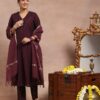 Chanderi Kamdaani Embroidered Solid Women’s 4 PC Long Kurta Set – Lavender