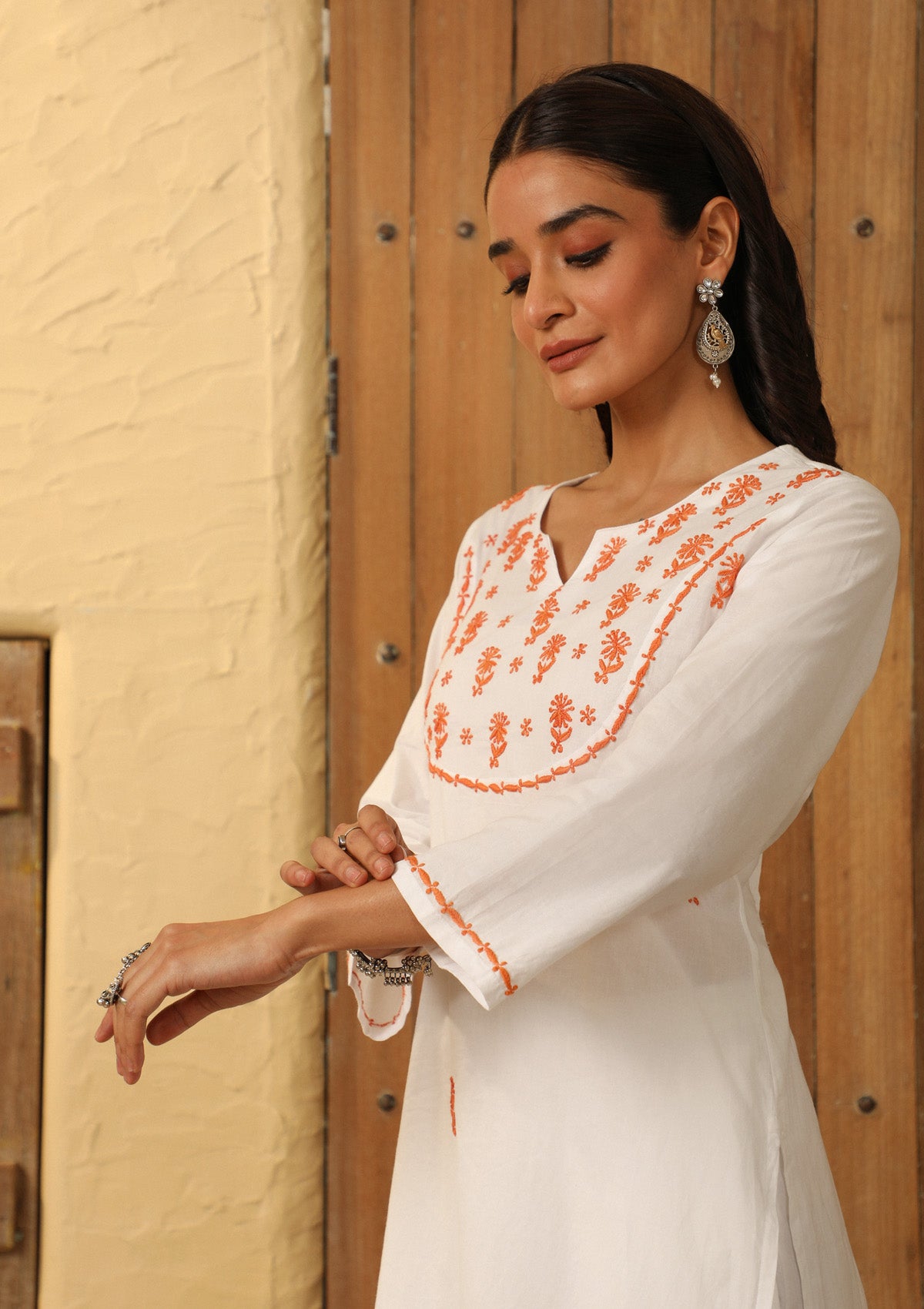 Cotton Solid Women’s 2 PC Long Kurta Set – White