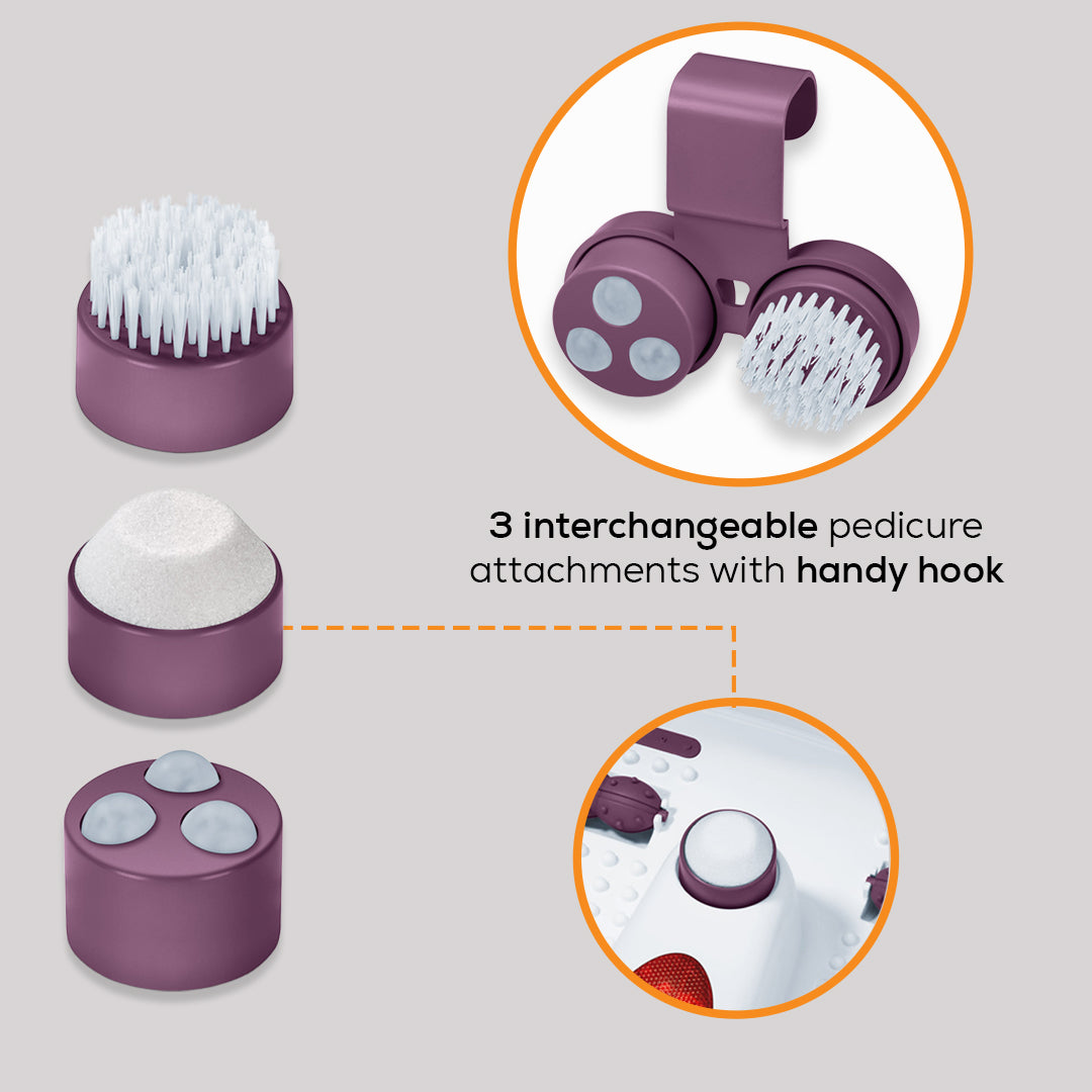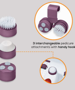 3 interchangeable pedicure attachments with handy hook