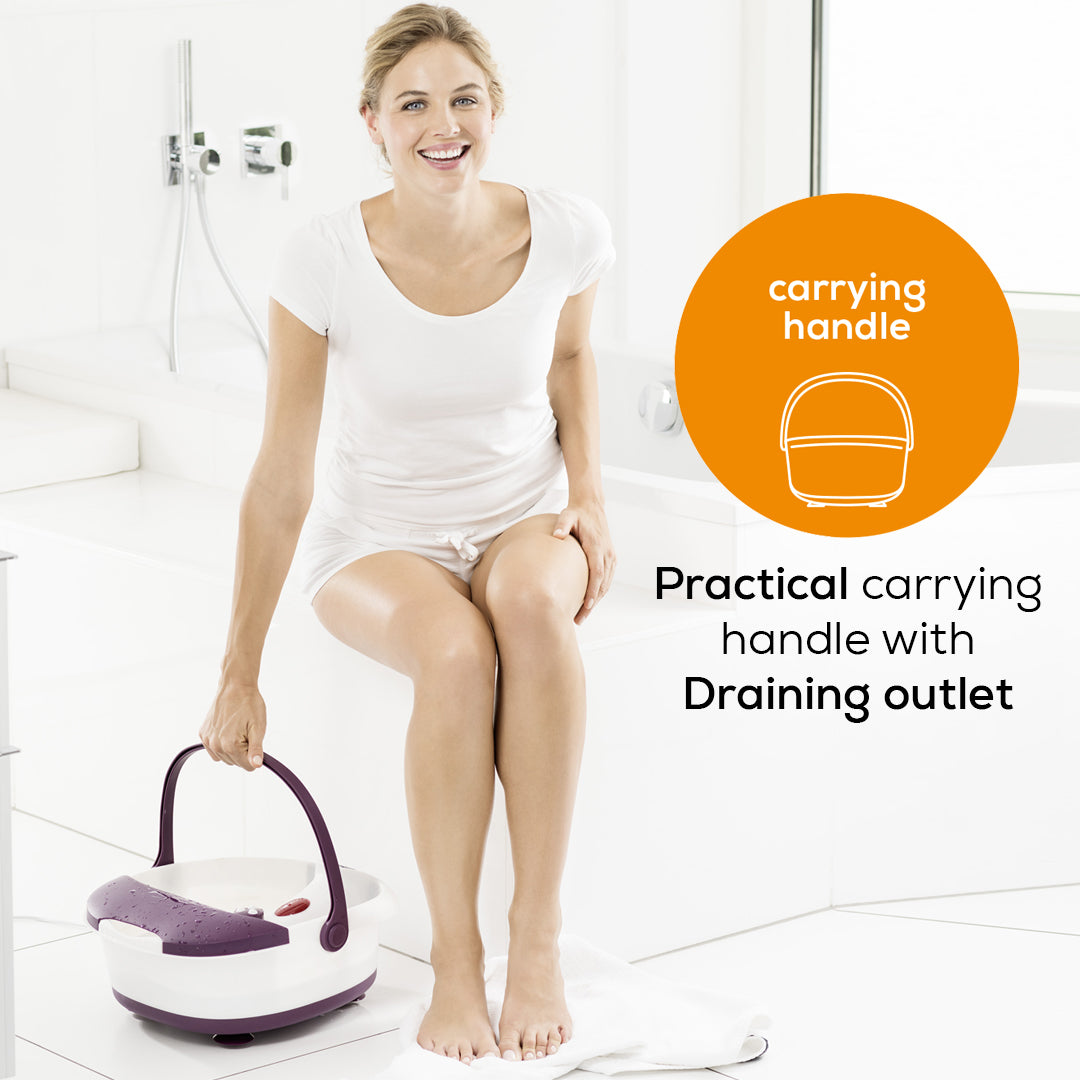 Portable boost of freshness for tired feet ? the foot bath with pedicure attachments and infrared light field provides relaxing care for your feet.