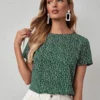 Floral Printed Round Neck Western Top for Women quantity