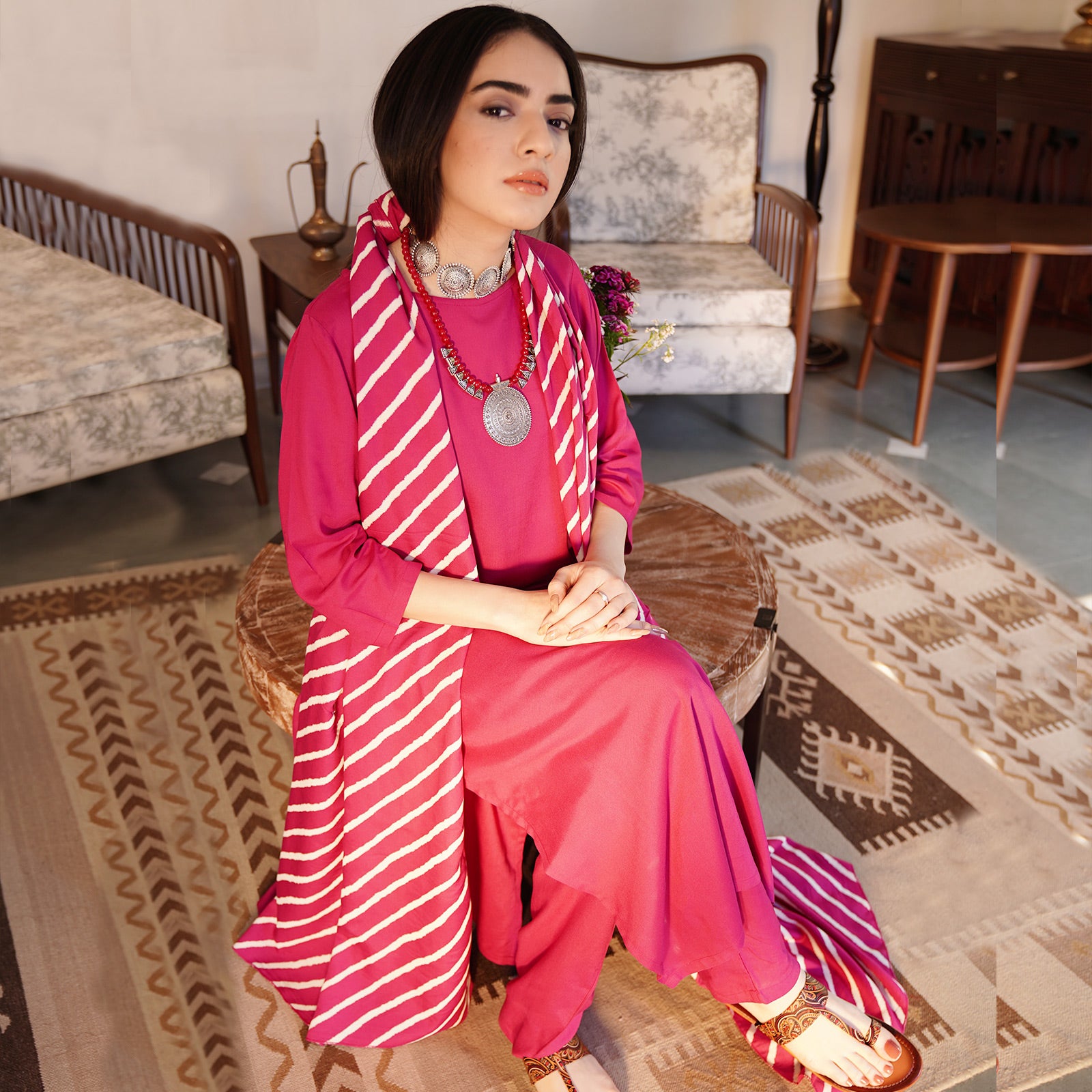 Magenta Kurta Set for Women with Straight Pants & Dupatta