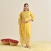 This traditional and elegant kurta set for women is designed to make a statement with its understated style, as they say, less is more! Combined with the dupatta and the gota work, it exemplifies classic beauty. If you want something classy but relaxed for a casual get together during the evening hours, it simply can’t get any better than this. Moreover, you have a natural, breathable material that ensures all-round comfort and sustainability. You can easily pair this up with ethenic jewellery to capture those stealing glances.