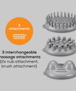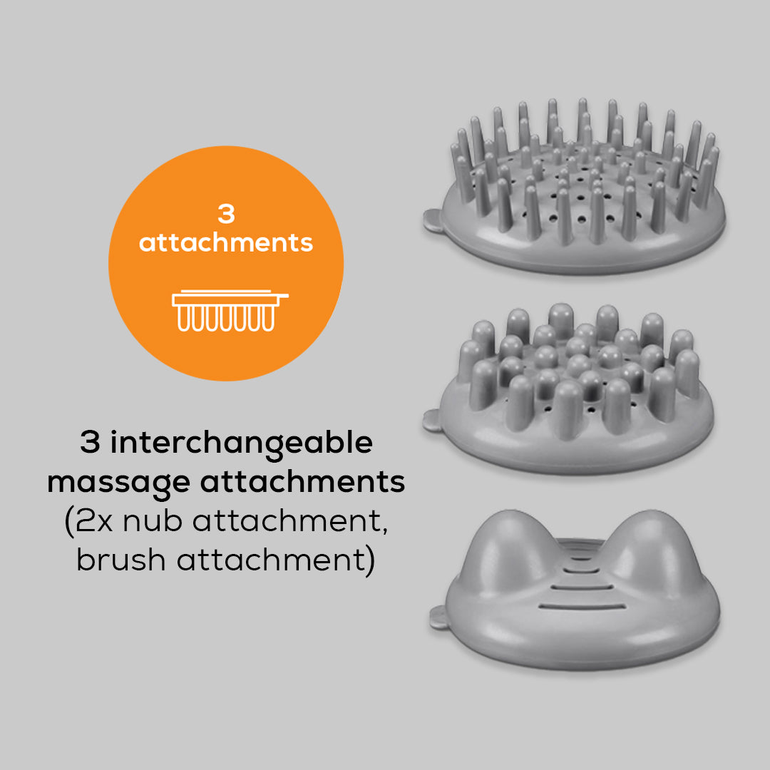 3 interchangeable massage attachments (2x nub attachment, brush attachment)