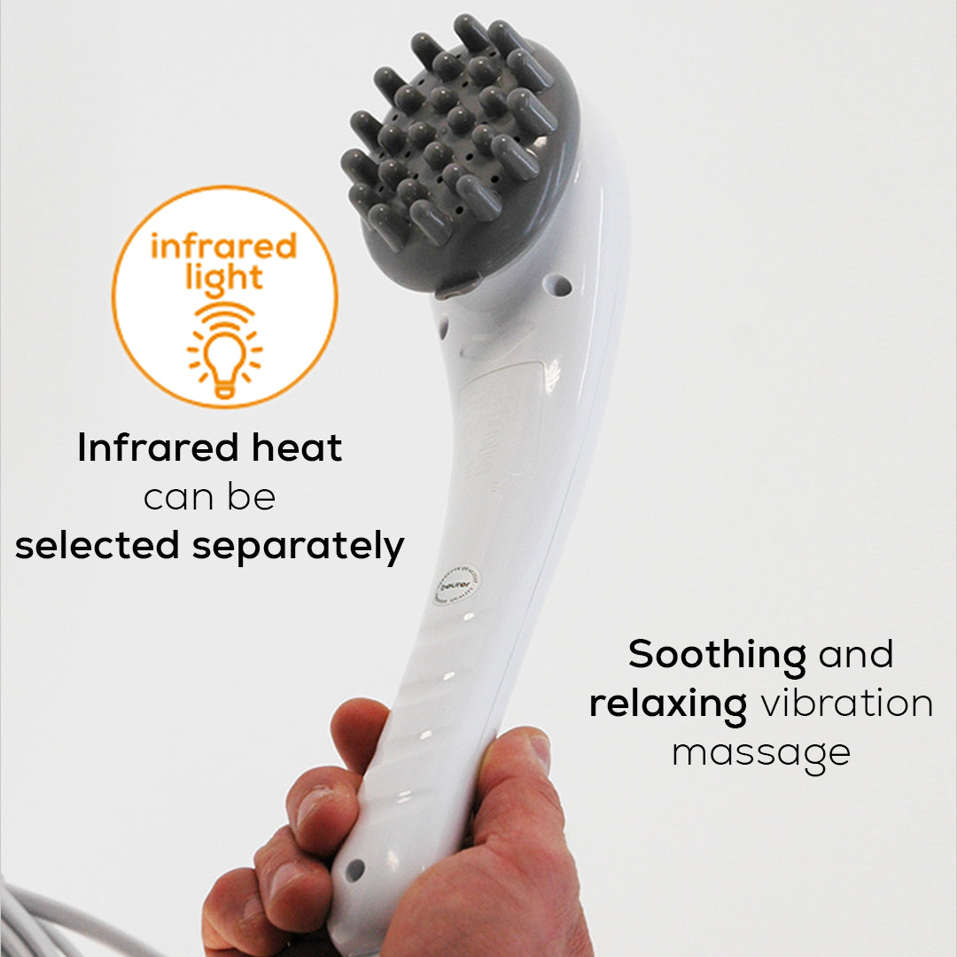 The infrared massager provides a soothing and relaxing vibration massage. You can alter the massage according to your wishes thanks to the 3 interchangeable attachments.