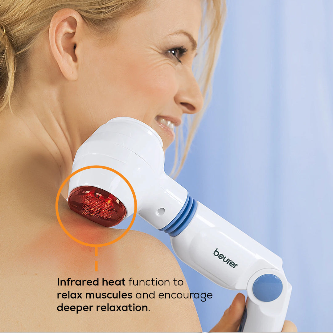 Relax and enjoy a soothing vibration massage. The rotating massage head and 3-way adjustable handle make the massager with infrared heat easy to use.