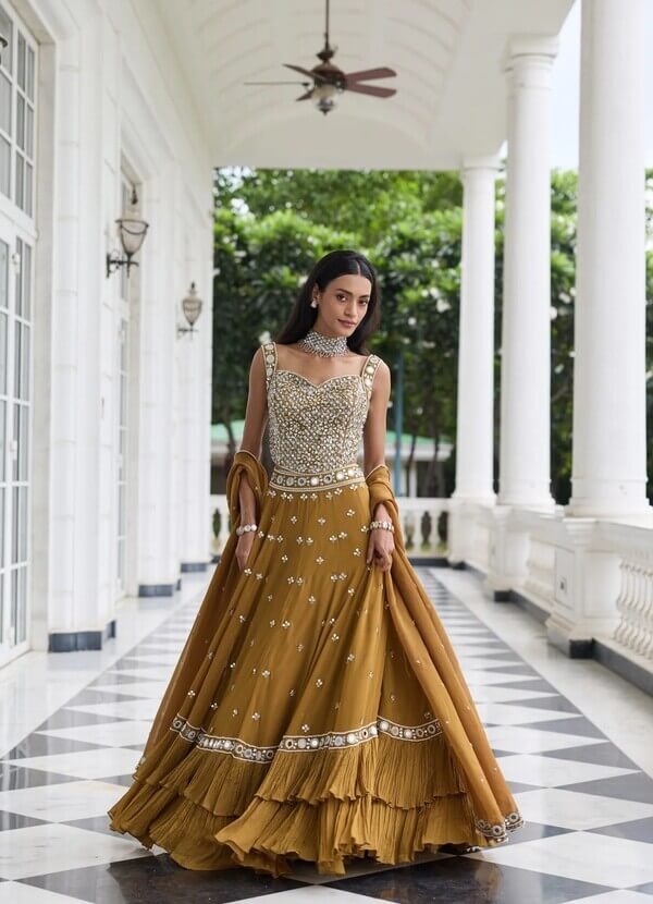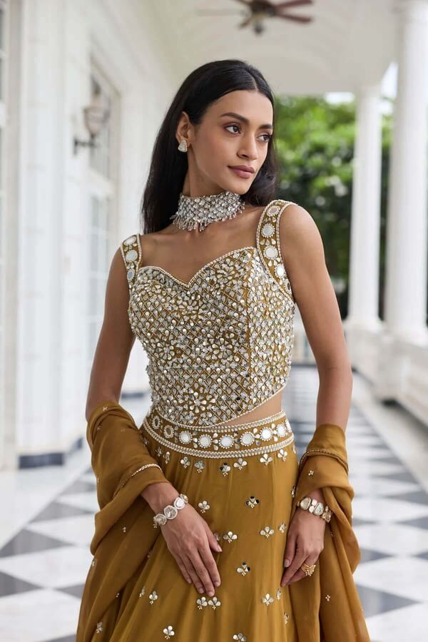Embellished Choli Paired With An Embellished Lehenga With Can Can And Dupatta