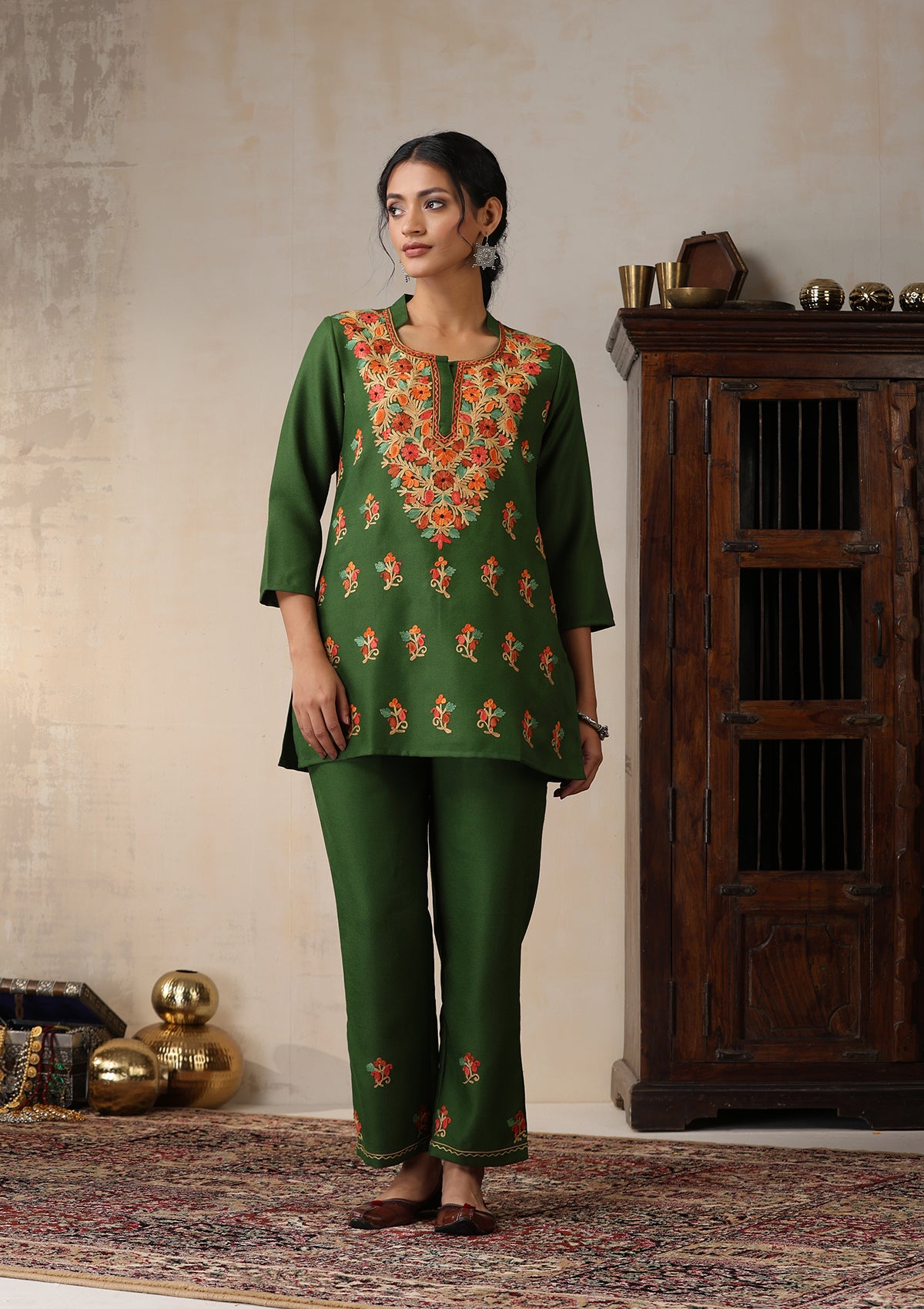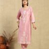 Chanderi Kamdaani Embroidered Solid Women’s 4 PC Long Kurta Set – Pink