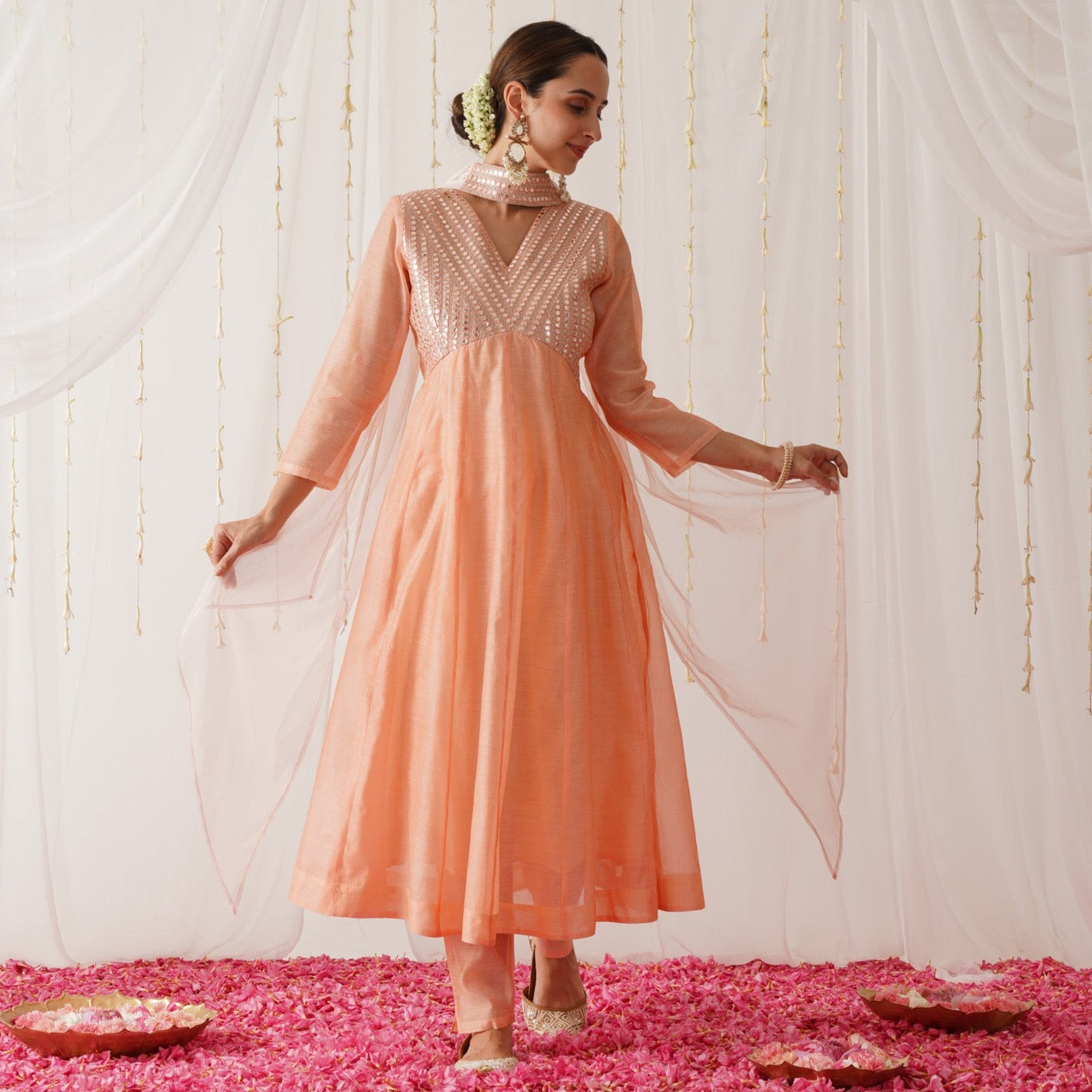 Be the first to review “Peach Chanderi Kurta Set with Dupatta” Cancel reply