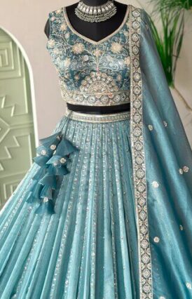 Sky blue color Bids Embroidery work Designer Lehenga Choli