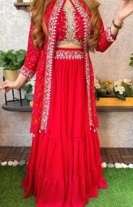 Trending Party Wear Pink Shrug 1 Minute Ready To Wear Lehenga