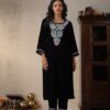 Pantalms Crafts Cotton Aari Embroidered Solid Women’s 2 PC Short Kurta Set – Black