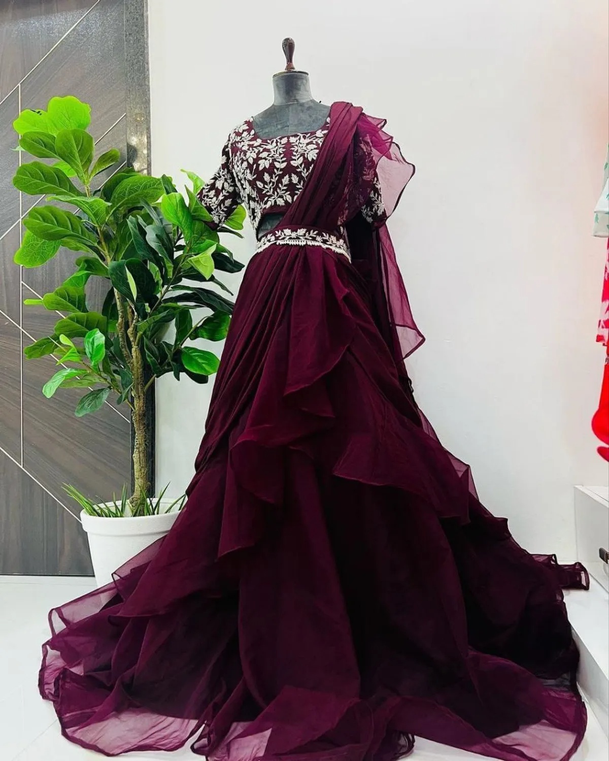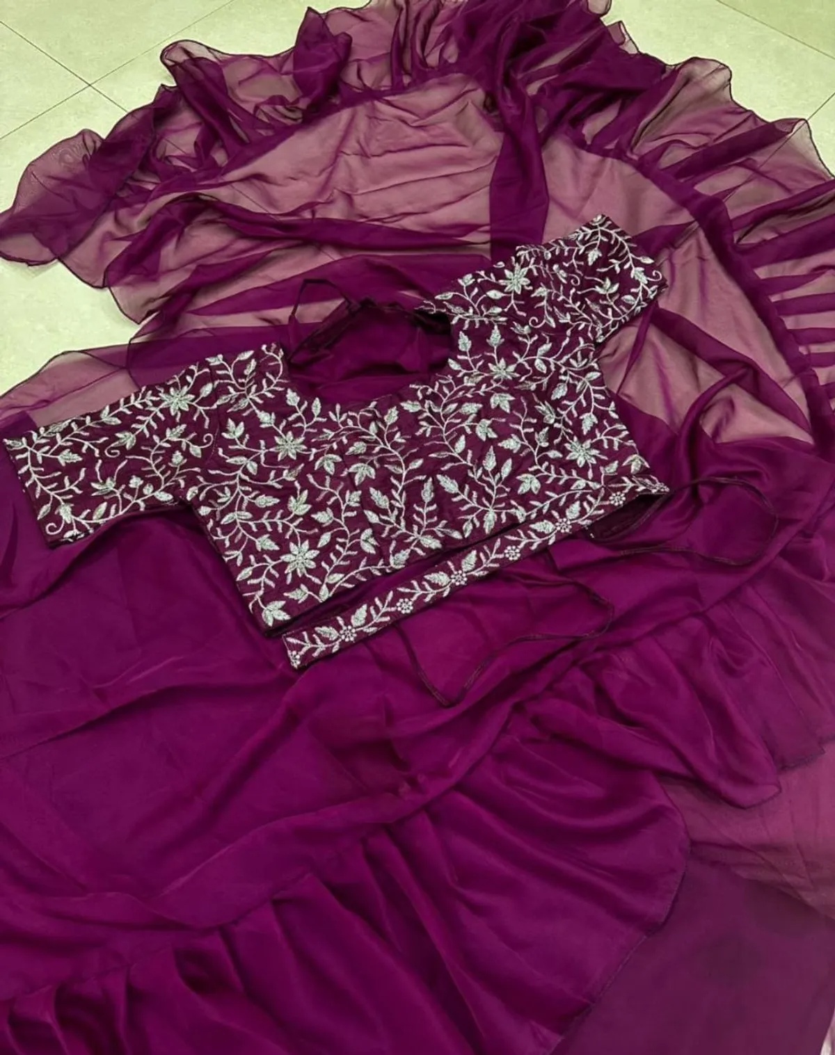 LAHENGA SAREE FABRICS : SHOFT CHINON SILK AND 4 MTR FLAIR